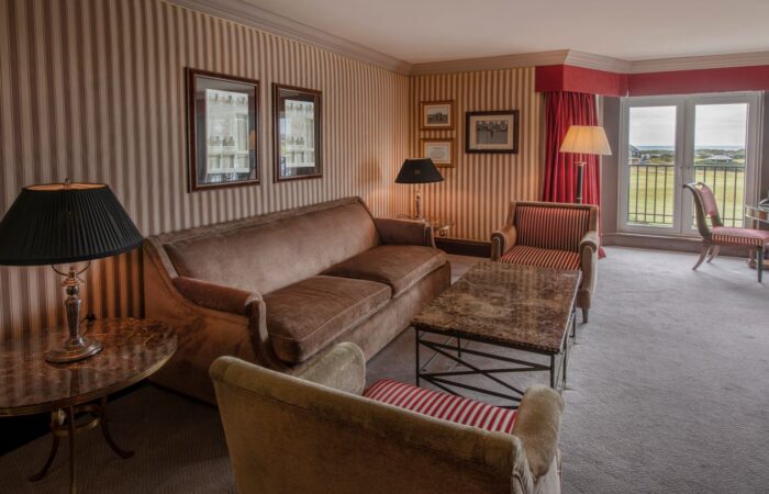 世界で最も有名なゴルフコース、オールドコースの17番グリーンの真上に位置するこれらのスイートは、床から天井までの窓から直接パノラマのような眺めが楽しめます。オールドコース、ロイヤル&エンシェント、セント・アンドルーズの歴史的な街並み、そしてファイフの海岸線まで一望できます。